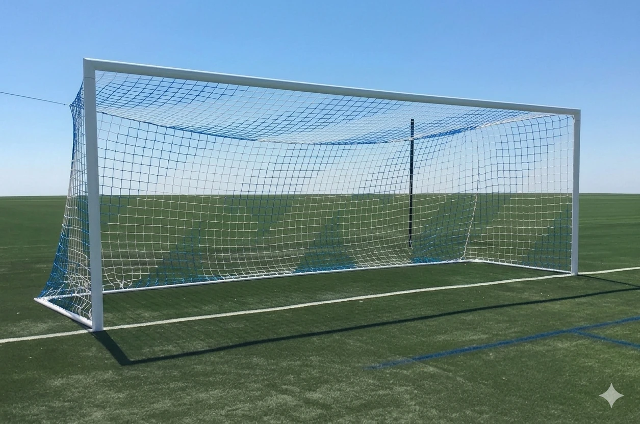 Sa maille carrée de 145 mm est conforme aux standards du football et permet une bonne visibilité du jeu.