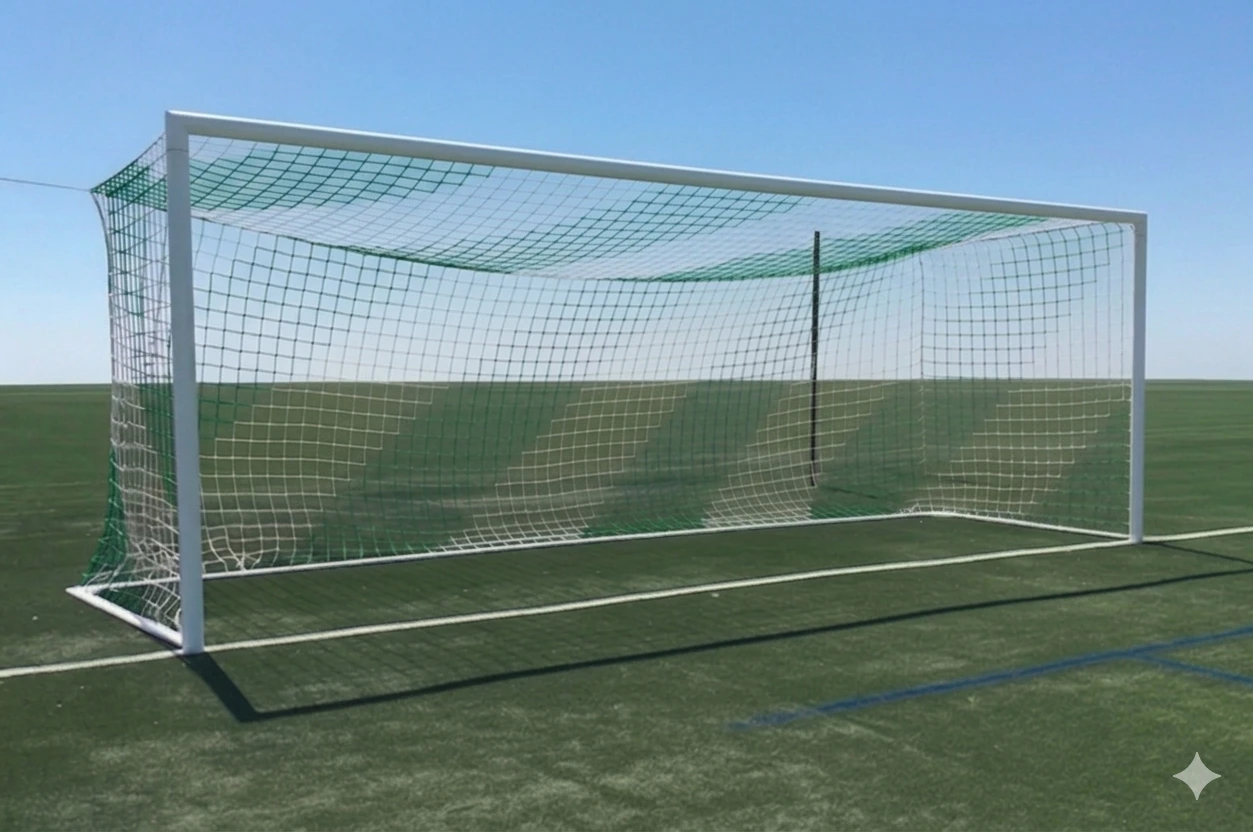 Filet de football de type européen, conçu pour les buts de football à 11. Fabriqué en polypropylène haute ténacité, ce filet avec nœuds garantit une excellente résistance à la traction, aux impacts répétés du ballon et aux conditions extérieures. Sa conception assure durabilité et fiabilité pour une utilisation régulière à intensive.